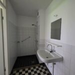 De badkamer is voorzien van douche met mengkraan en wastafel met planchet, tevens bevindt zich hier het toilet.