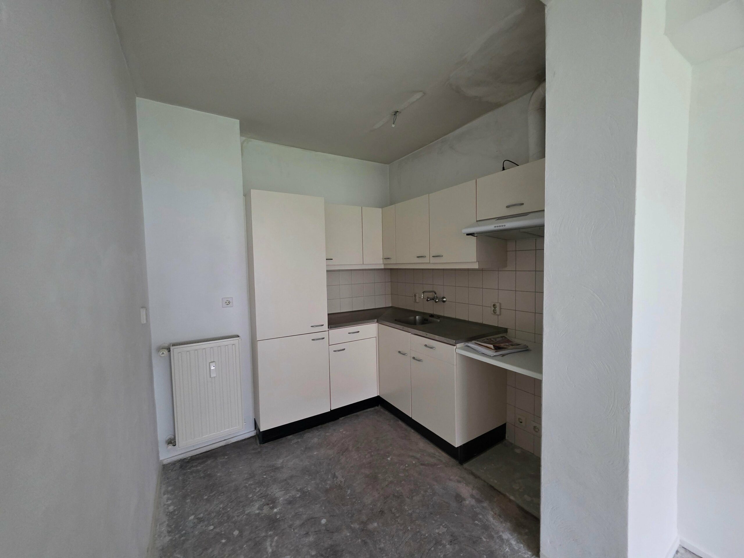 De woonkamer beschikt over een half open keuken. De keuken is voorzien van een afzuigkap en een gootsteen met mengkraan.