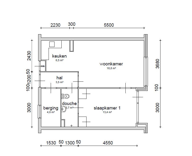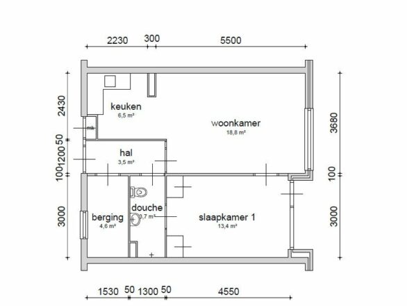 Huurprijs: € 535,00 euro per maand excl. elektra en water
