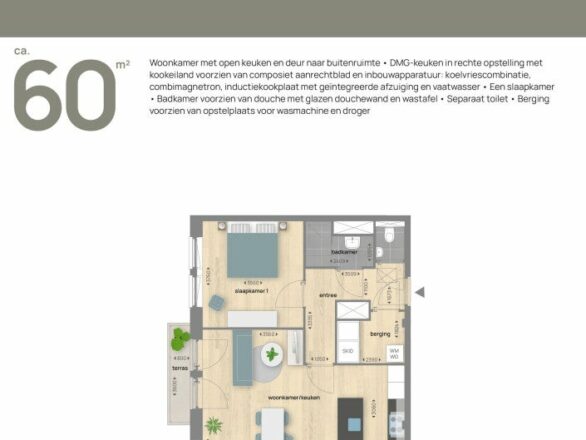 Tevens is er een inpandige berging waar de aansluiting wasmachine zich bevindt.
