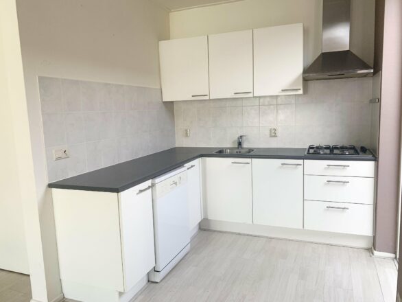 Deze woning beschikt over een praktische en comfortabele indeling. Bij binnenkomst kom je in de hal die toegang geeft tot de woonkamer met open keuken. De keuken is voorzien van een gas kookplaat, afzuigkap en een vaatwasser.