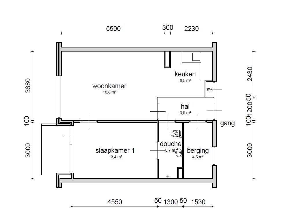 Dit appartement is gelegen op de eerste verdieping en heeft 1 slaapkamer.