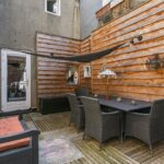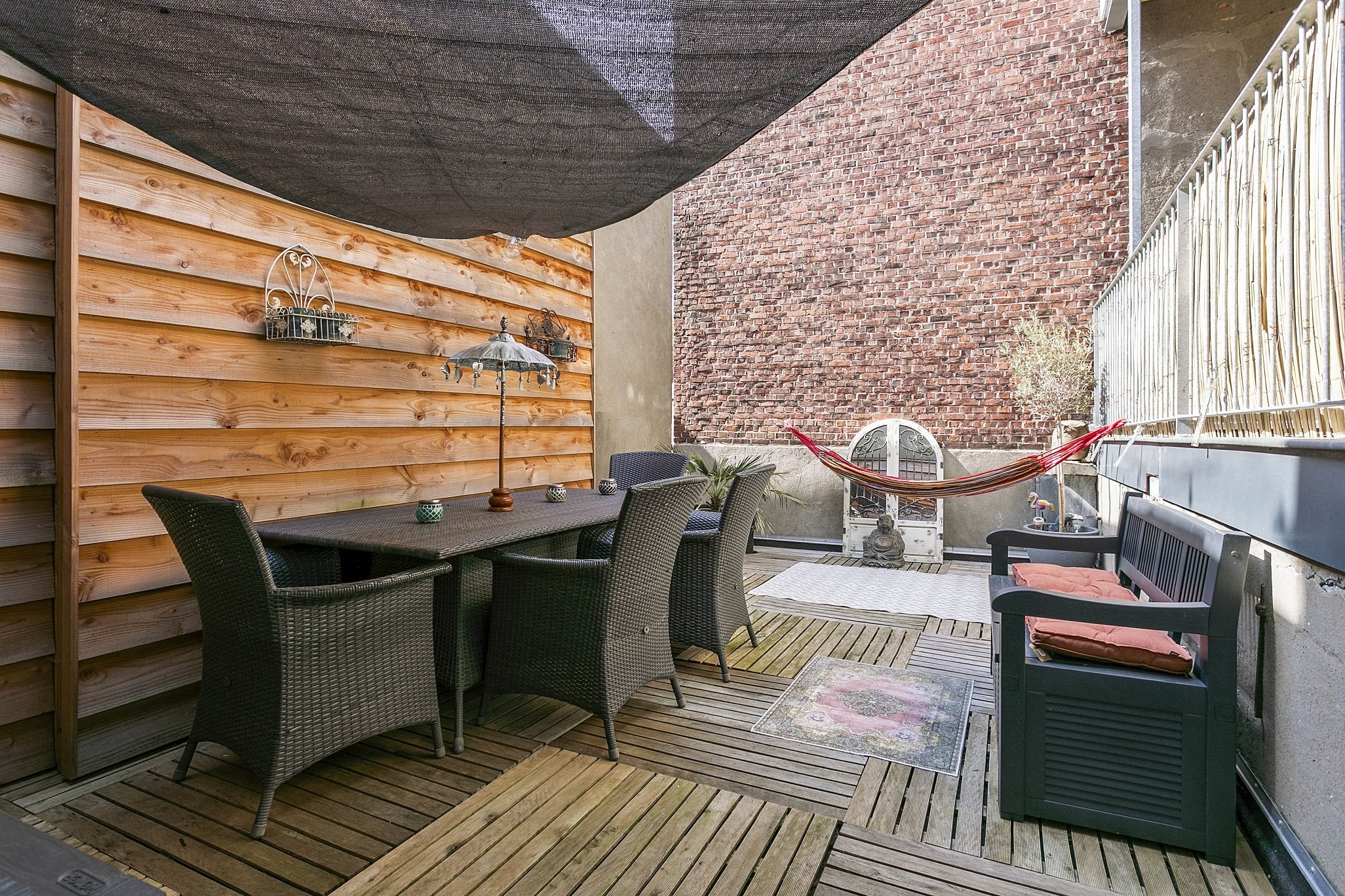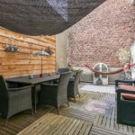 Ruim terras (6,3×3,2) met hardhouten vlondervloer en buiten verlichting.