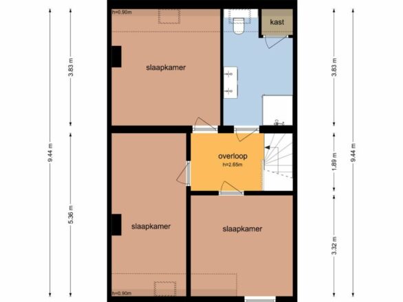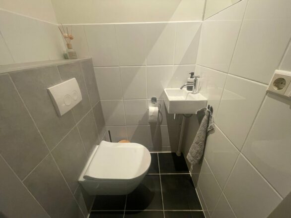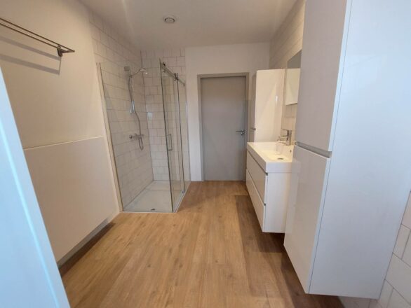 Op de tweede verdieping bevinden zich de drie slaapkamers en een royale, luxe badkamer. Deze badkamer is uitgerust met een douche, dubbele wastafel met meubel en toilet.