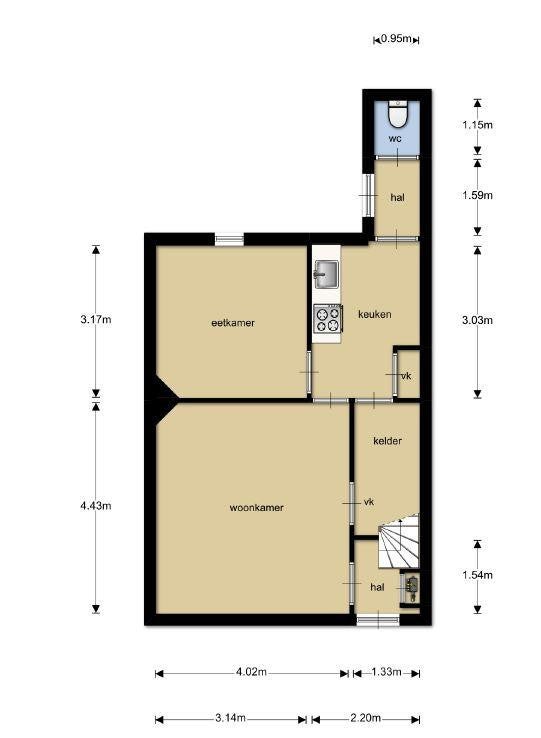Via de entree kom je in de gezellige woonkamer met een apart zitgedeelte en een eetkamer. De eetkamer beschikt over openslaande deuren naar de tuin.