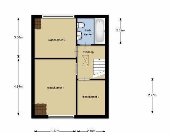 Vanaf de overloop zijn drie slaapkamers bereikbaar van circa 13 m², 10 m² en 6 m². Alle slaapkamers zijn voorzien van een dakkapel.
