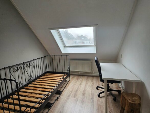 Deze verdieping is voorzien van twee slaapkamers aan de voorzijde van de woning (ca. 12 m² en 5 m² ), één slaapkamer (ca. 11 m²) aan de achterzijde, een badkamer en een vaste trapopgang naar de zolder.