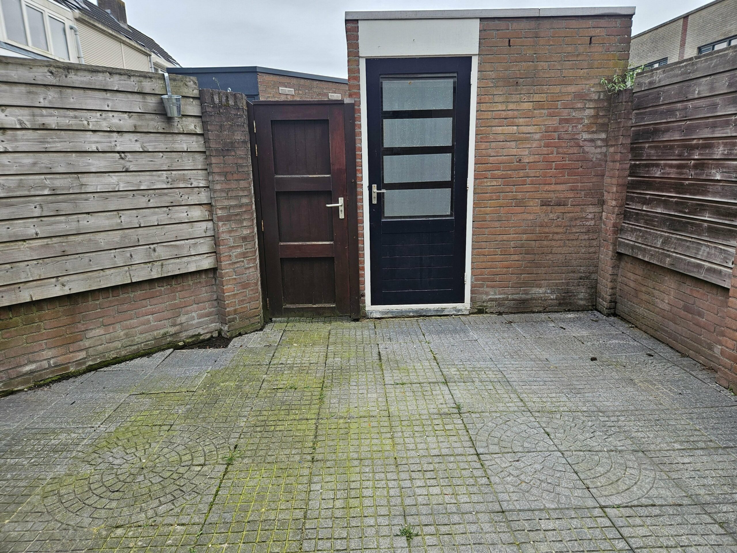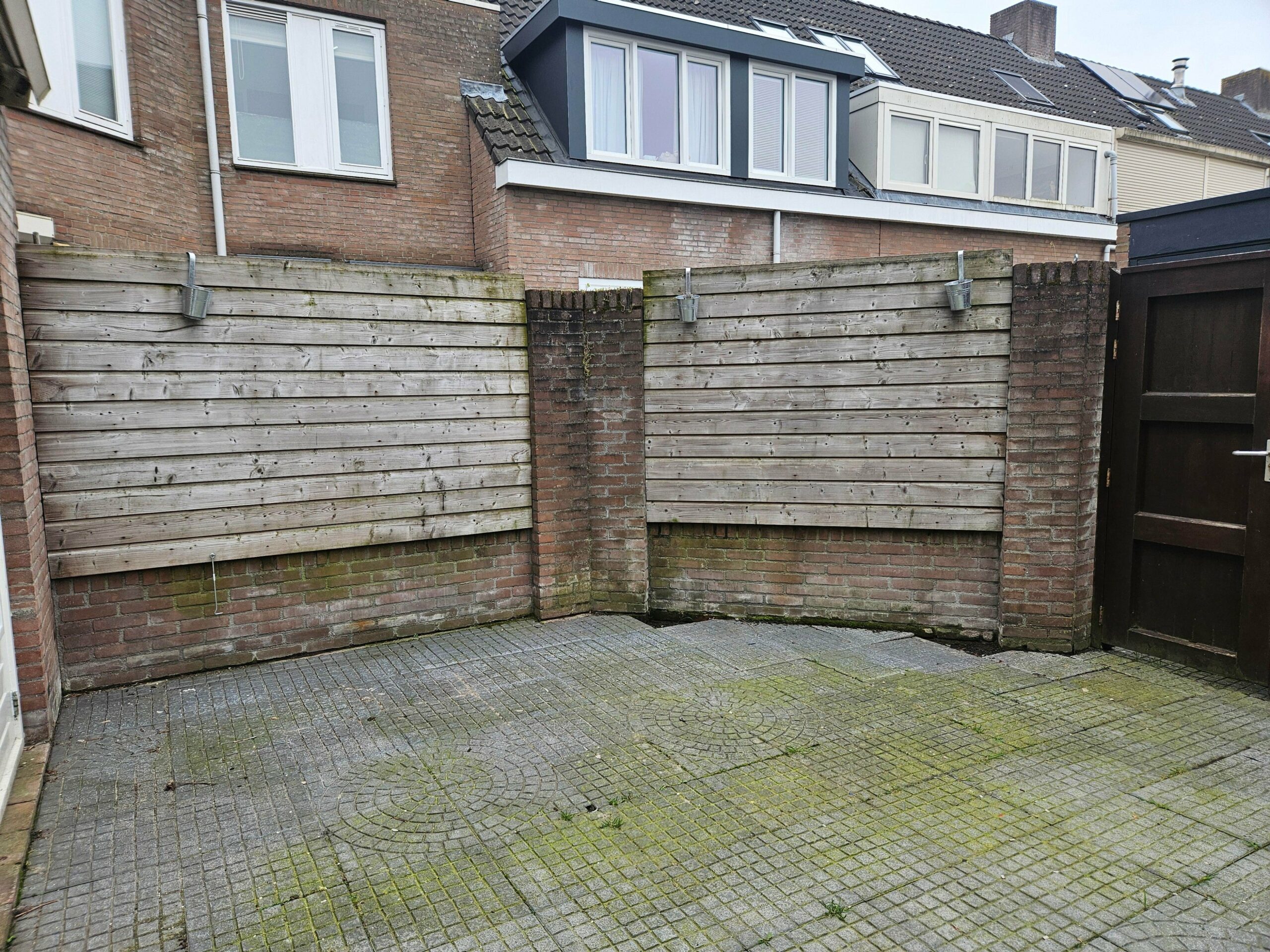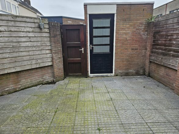 De achtertuin van 24m² is onderhoudsvriendellijk en biedt toegang tot de berging en de achterom.