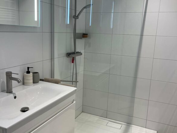 De moderne keuken is van alle gemakken voorzien, waaronder een kookplaat met geïntegreerde afzuigkap, vaatwasser, koelkast en combi-oven. Daarnaast is er keukengerei aanwezig. De badkamer is stijlvol afgewerkt en uitgerust met een inloopdouche, wastafel met meubel, spiegel en een handdoekradiator. Ook beschikt het appartement over een inpandige berging met aansluiting voor de wasmachine.