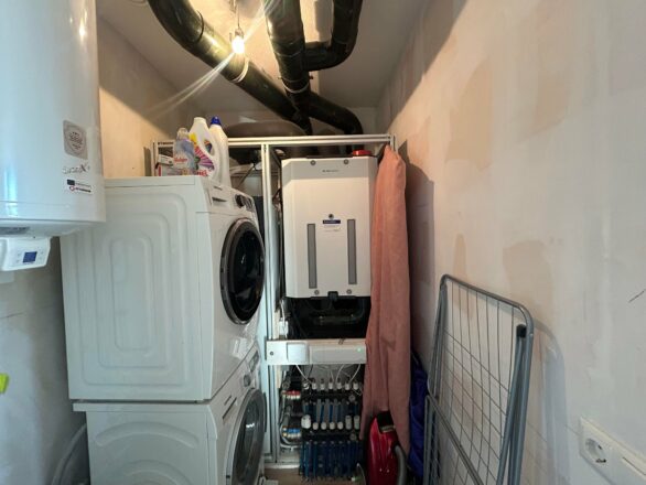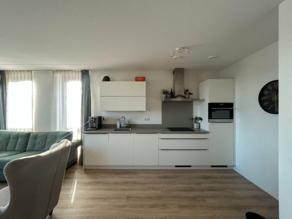 Indeling: De berging is voorzien van een opstelplaats voor wasmachine, wasdroger, warmte terugwin systeem, warmtepomp en boiler. Bij de woonkamer heeft u toegang tot het balkon. Er is een open keuken in rechte opstelling met een Kwartsiet werkblad met veegrand en inbouwapparatuur: inductiekookplaat, combimagnetron, koelvriescombinatie, wandschouwkap en vaatwasser. De badkamer is voorzien van bad, douche met glazen douchedeur, toilet en dubbele wastafel. Ook zijn er 2 slaapkamers.