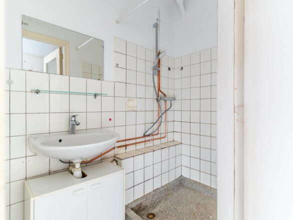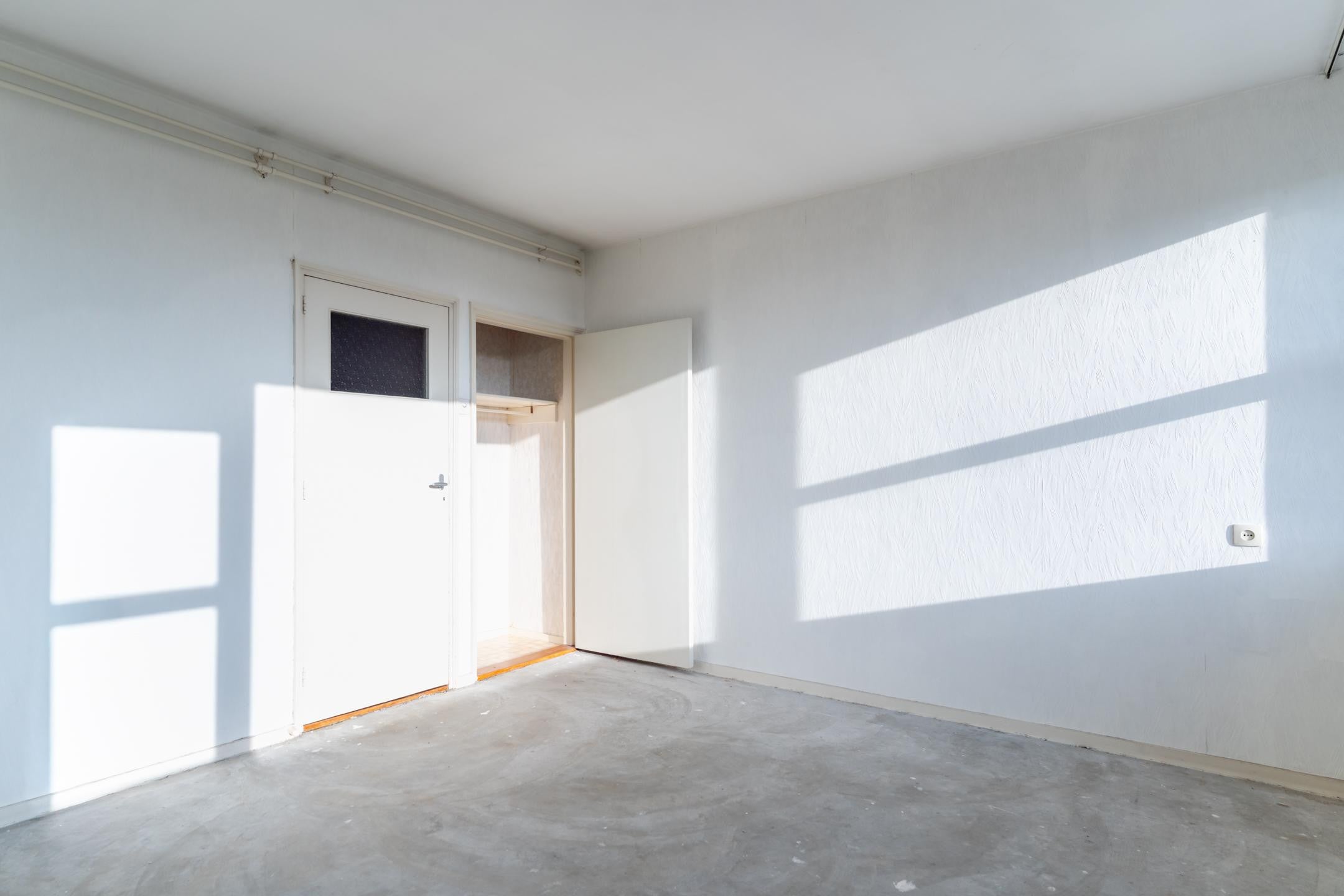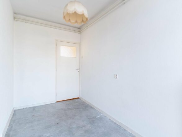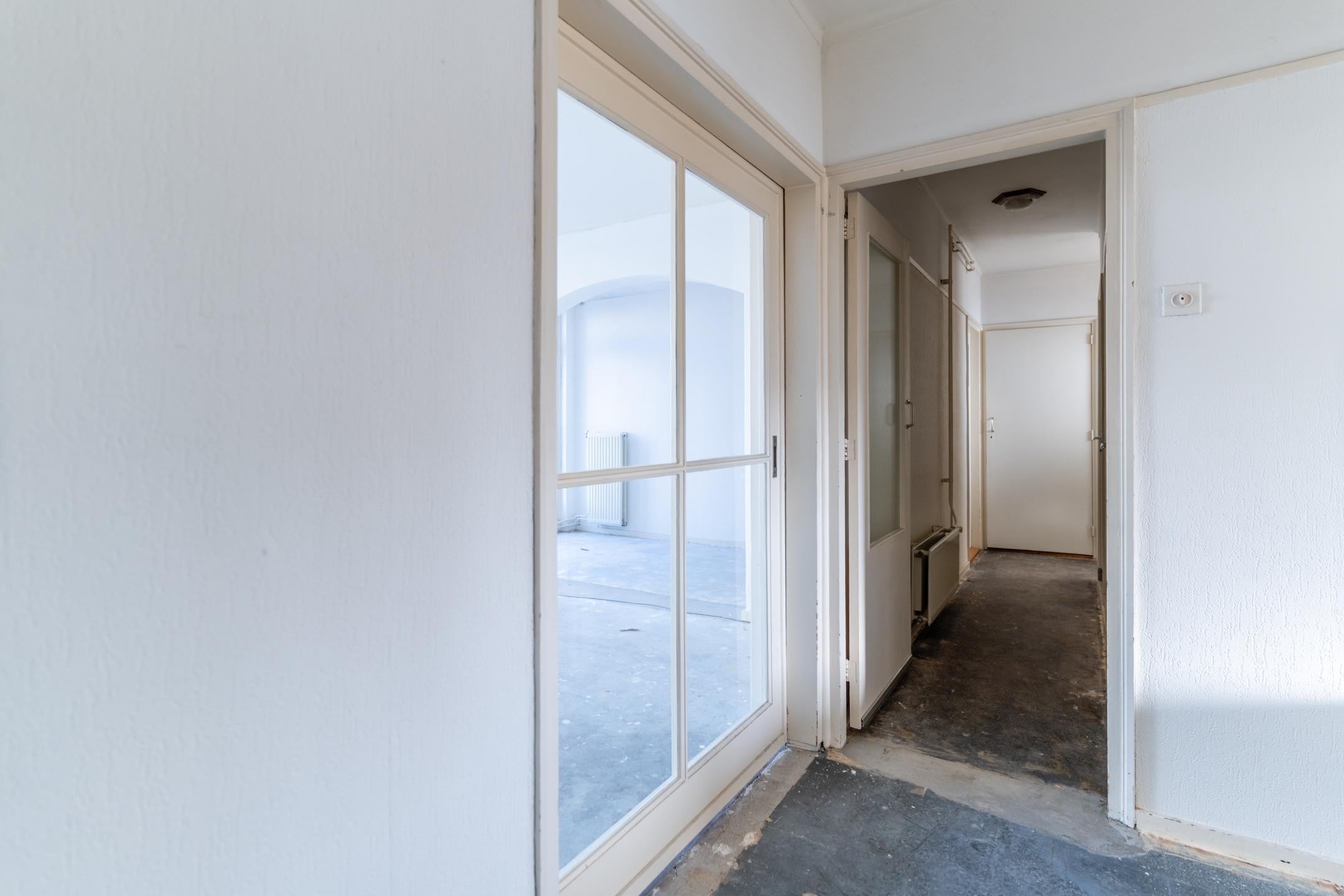 Via de gezamelijke portiek, is het appartement te vinden op de derde etage. Hierbij komt u eerst binnen in de hal die u toegang verleent tot alle kamers.De woonkamer beschikt over grote ramen die veel natuurlijk licht binnenlaat. De woonkamer heeft een deels open keuken zonder apparatuur, uiteraard is hier wel ruimte voor. Via de hal bevindt zich ook het aparte toilet.