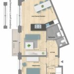 De keuken is uitgerust met een kookplaat met ingebouwde afzuigkap, vaatwasser, koelkast, combi oven en koelkast. De badkamer is uitgerust met een inloopdouche, wastafel met meubel, spiegel en handdoekradiator.