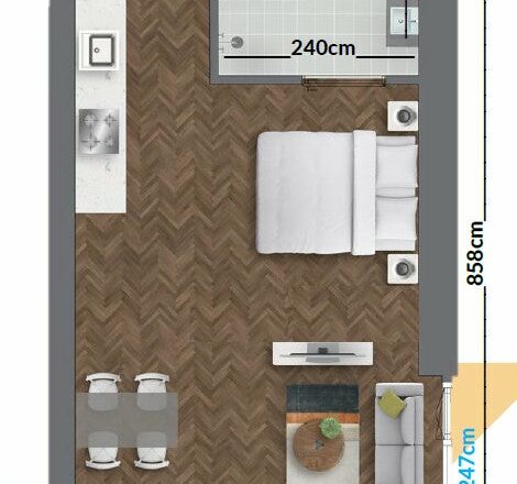 De Loft is gelegen op de eerste verdieping. De woonkamer heeft grote ramen met veel lichtinval. De loft is volledig afgewerkt en instap klaar. De loft heeft een kwalitatieve pvc vloer en de muren zijn volledig afgewerkt.