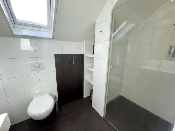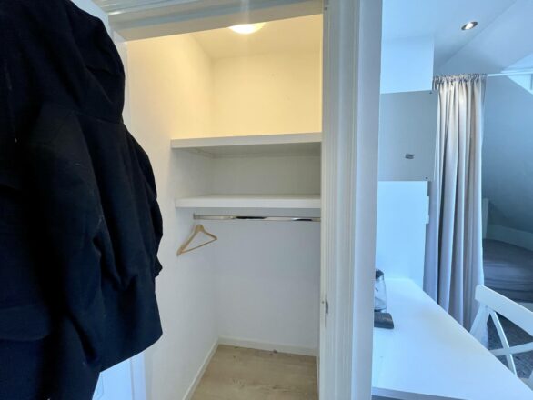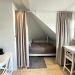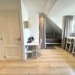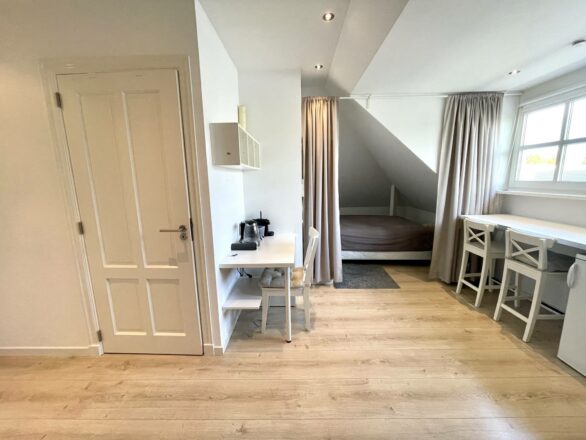 In de studio is aanwezig een bed, bank, salontafel, hoge tafel met stoelen, kledingkast en een kleine koelkast. Je hebt je eigen badkamer tot je beschikking met een inloopdouche, toilet, wastafel met meubel en spiegel.