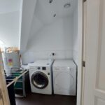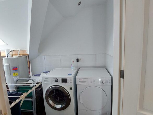 De keuken en wasruimte deel je met drie andere bewoners. De keuken is uitgerust met elektrische kookplaat, oven, afzuigkap en voldoende opbergruimte.