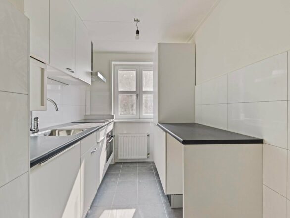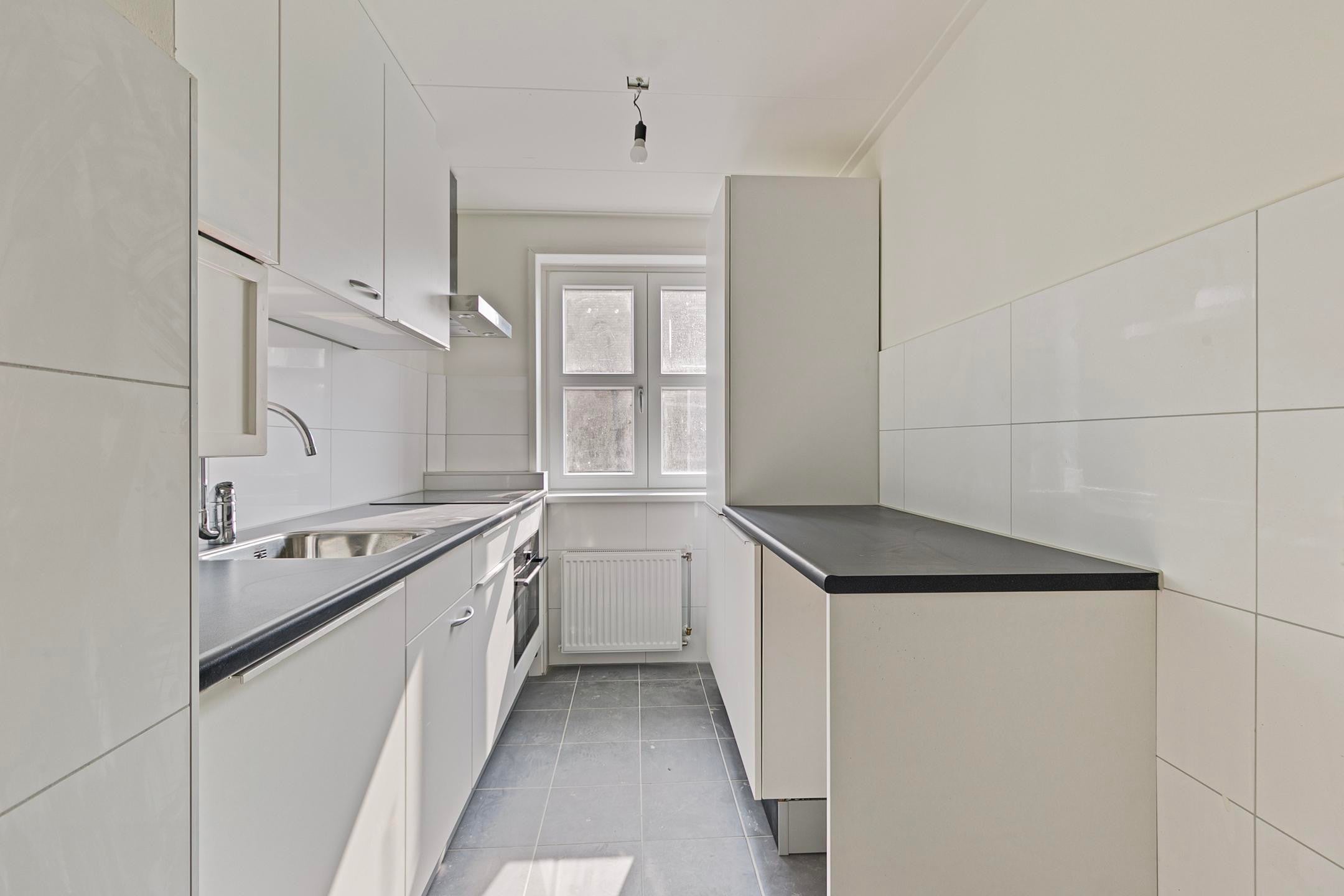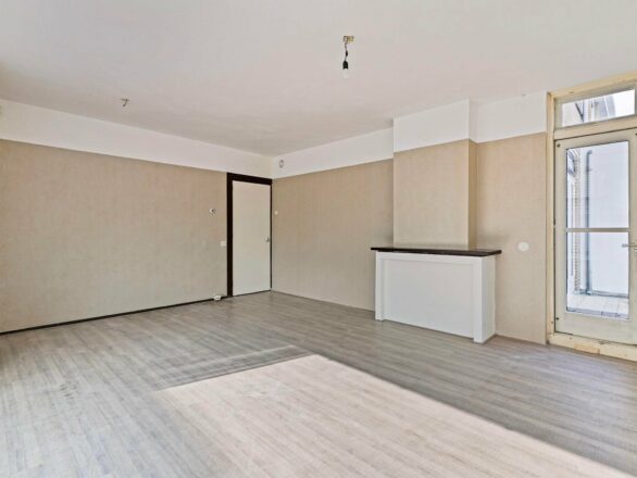 De woonkamer beschikt over grote ramen die veel natuurlijk licht binnenlaat. Naast de woonkamer bevindt zich de keuken welke in zijn geheel gerenoveerd is.