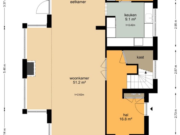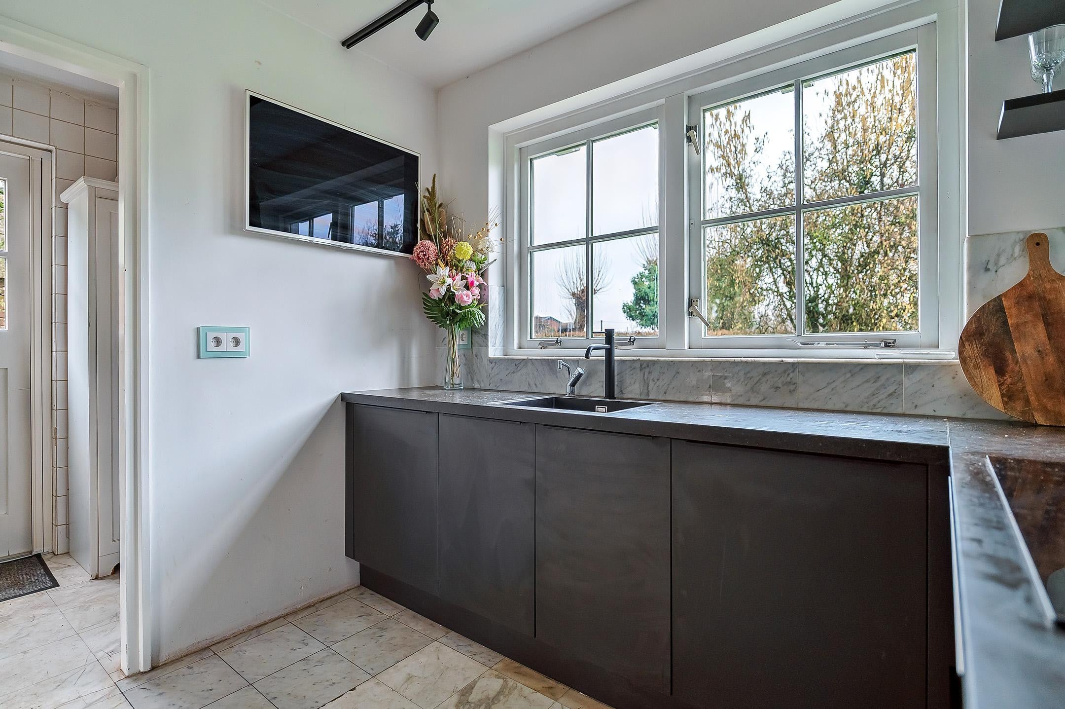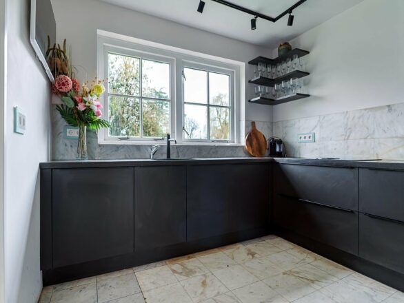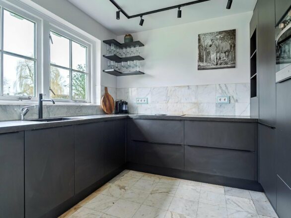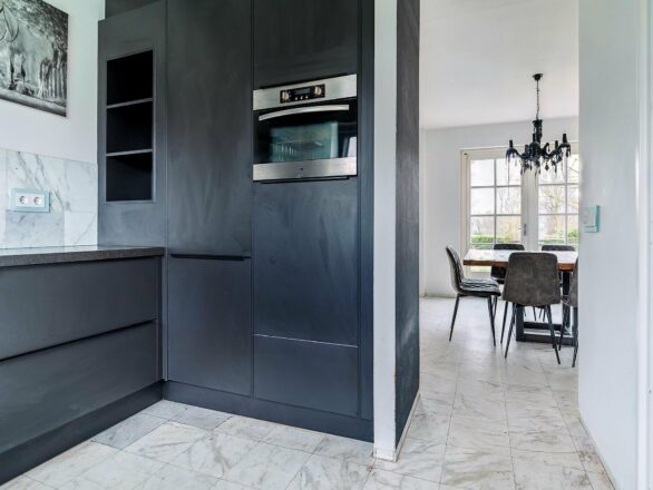 De keuken is modern en praktisch ingericht met een kookplaat, diverse ingebouwde apparaten, een combimagnetron, een vaatwasser, een afzuigkap en een koelkast Hiermee is koken en tafelen een plezierig en makkelijk onderdeel van uw dagelijks leven. De sfeervolle woonkamer is zeer royaal en beschikt over een woon- en eetgedeelte. De open haard zorgt voor een sfeervol geheel.