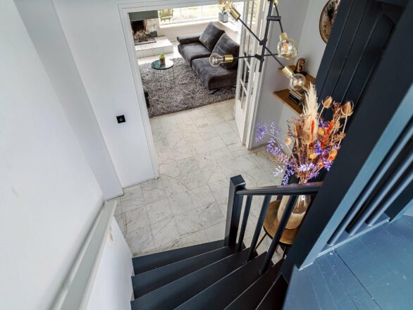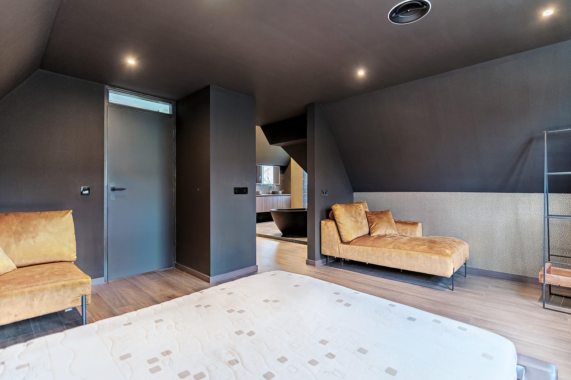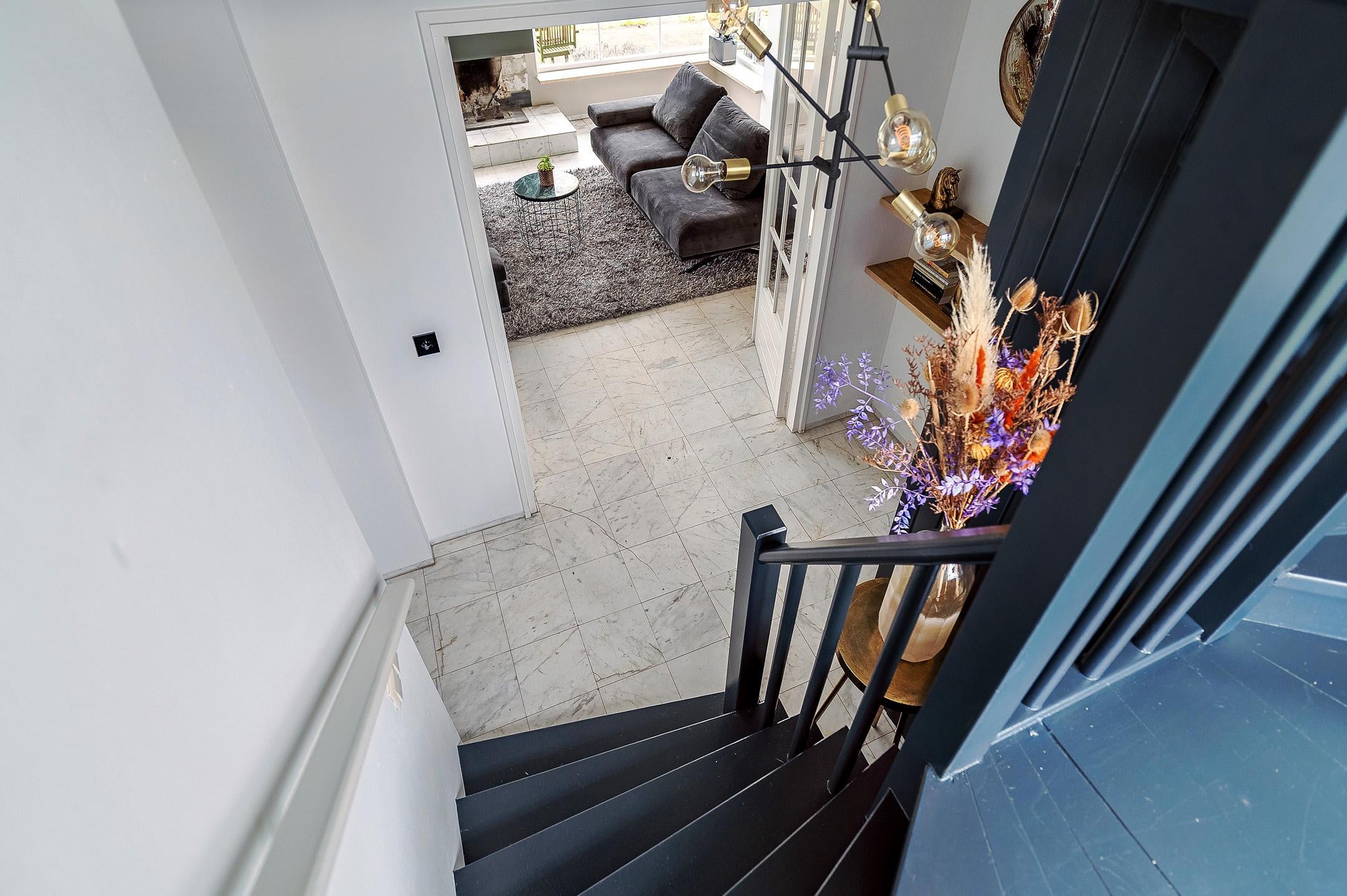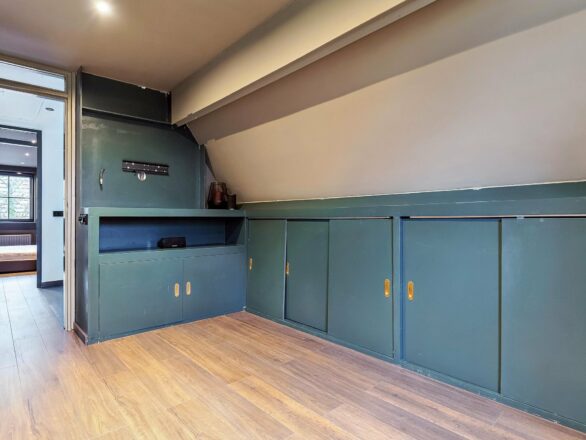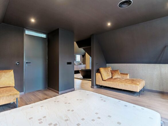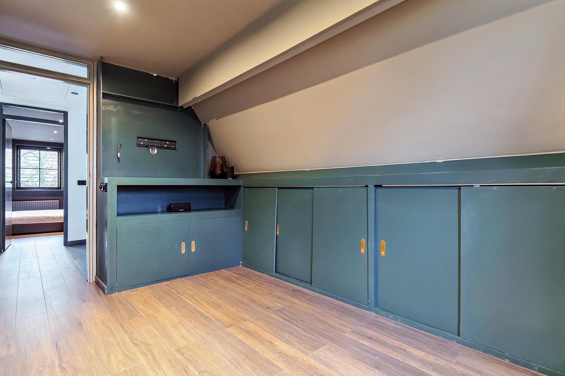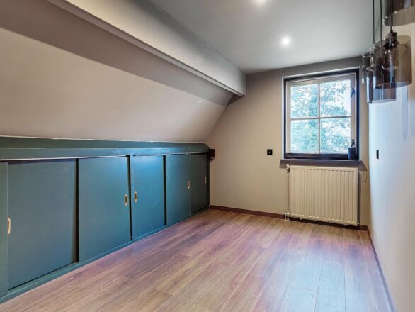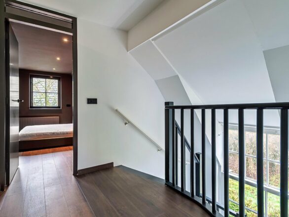 Op de eerste verdieping zijn twee slaapkamers gesitueerd, waarvan één volledig gerenoveerd met luxe badkamer en suite voorzien van vloerverwarming, wasruimte en royale kastruimte. Tevens bevindt zich op de eerste verdieping een apart toilet.