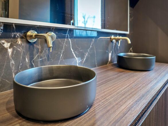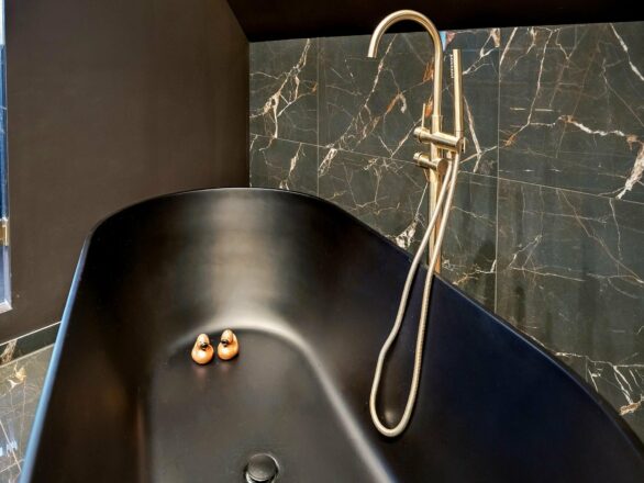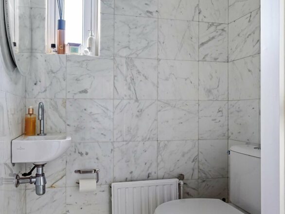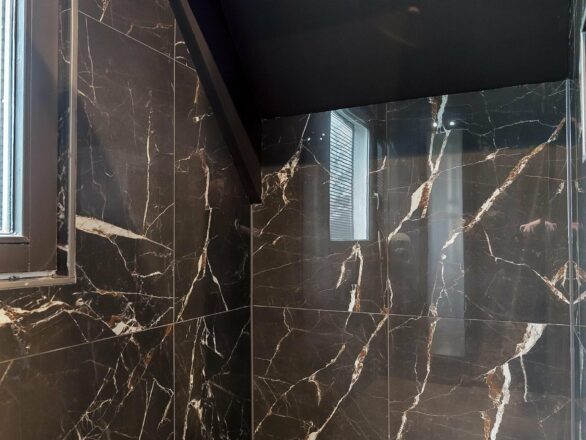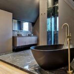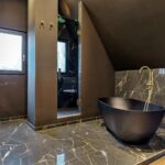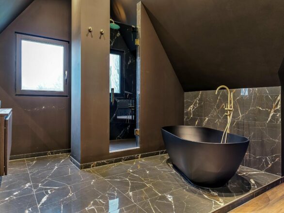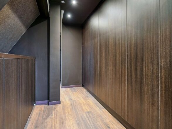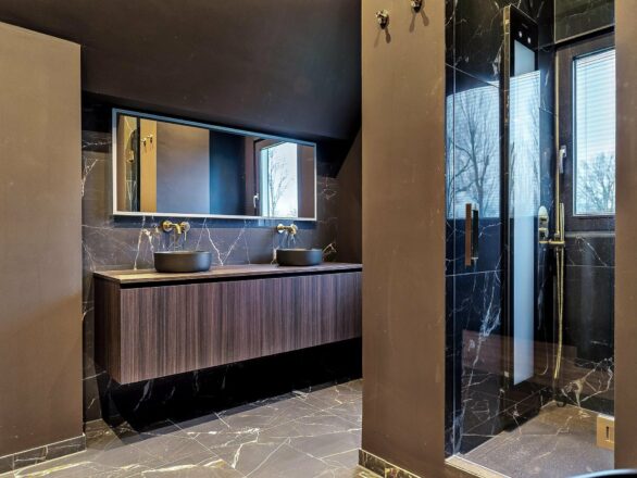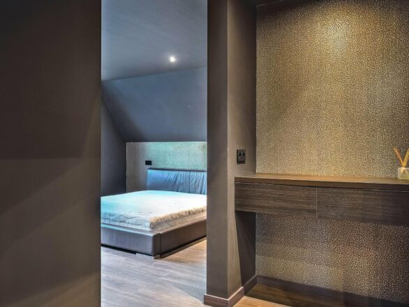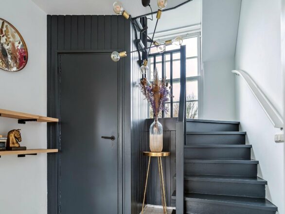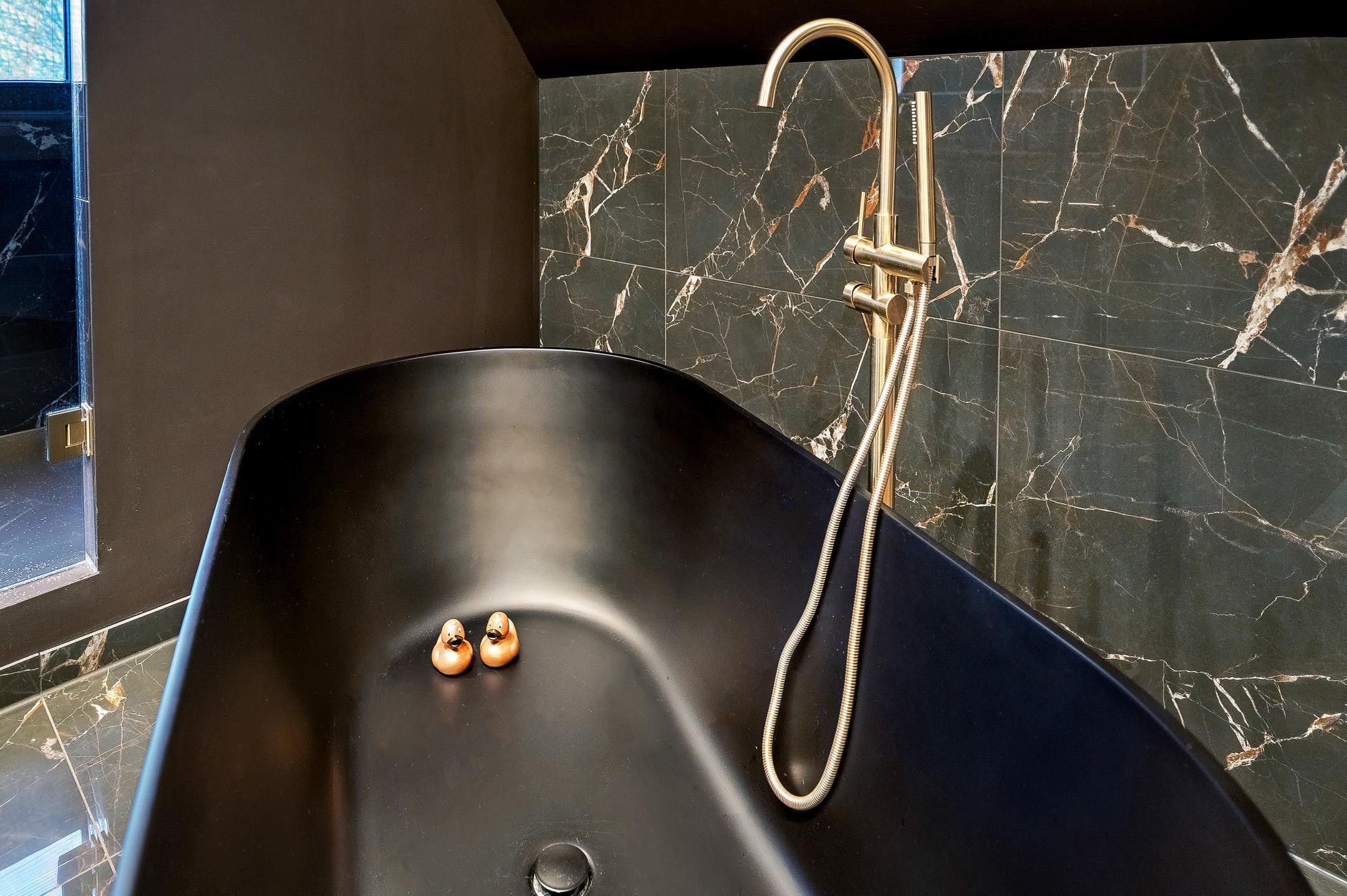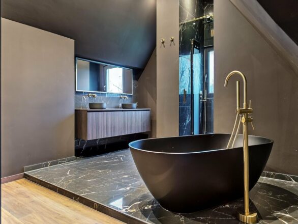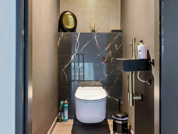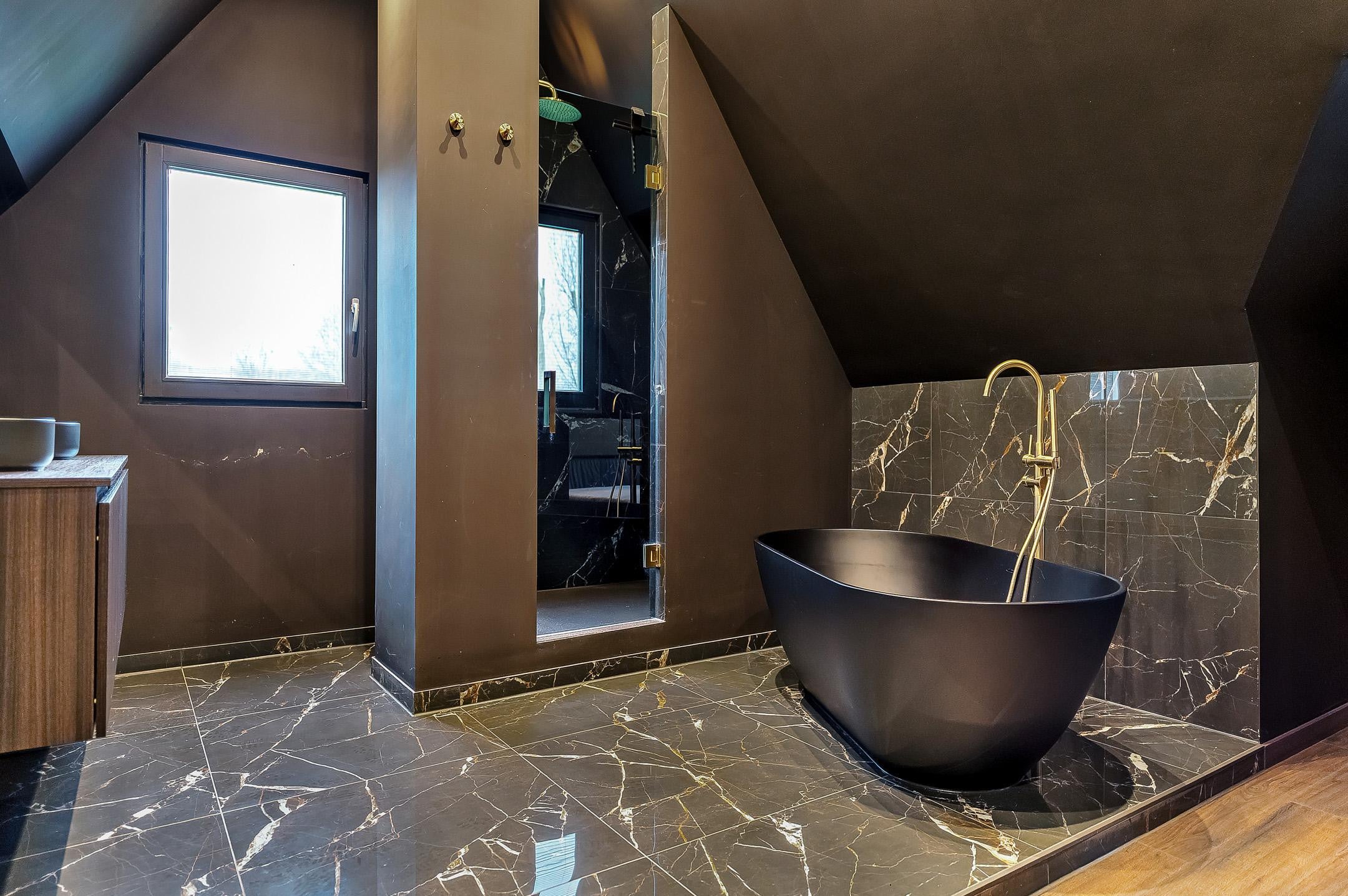 Op de eerste verdieping zijn twee slaapkamers gesitueerd, waarvan één volledig gerenoveerd met luxe badkamer en suite voorzien van vloerverwarming, wasruimte en royale kastruimte. Tevens bevindt zich op de eerste verdieping een apart toilet.