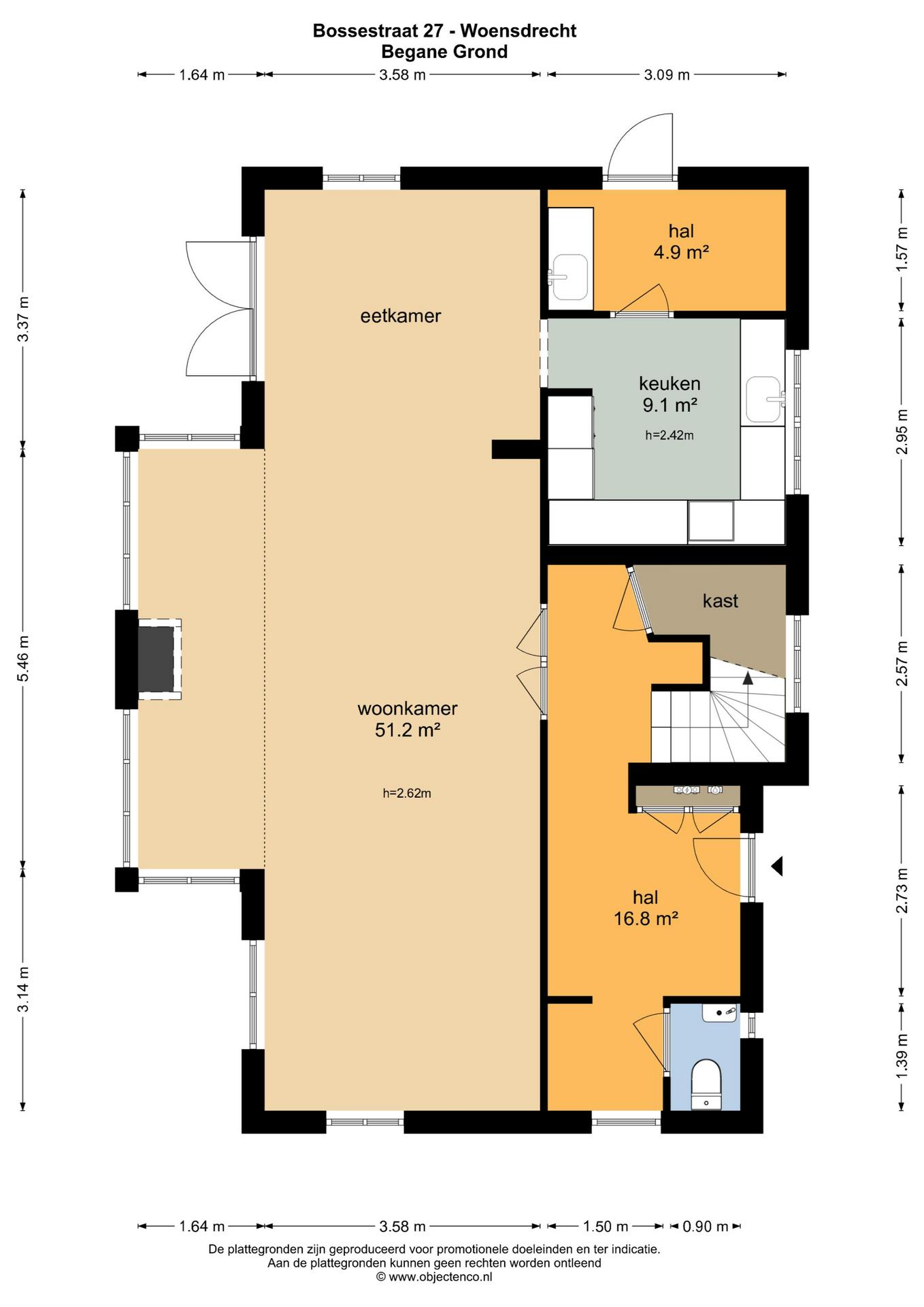 Op de begane grond bereikt men vanuit de hal de ruime woonkamer, bijkeuken, keuken en toiletruimte. De volledige benedenverdieping is voorzien van vloerverwarming.